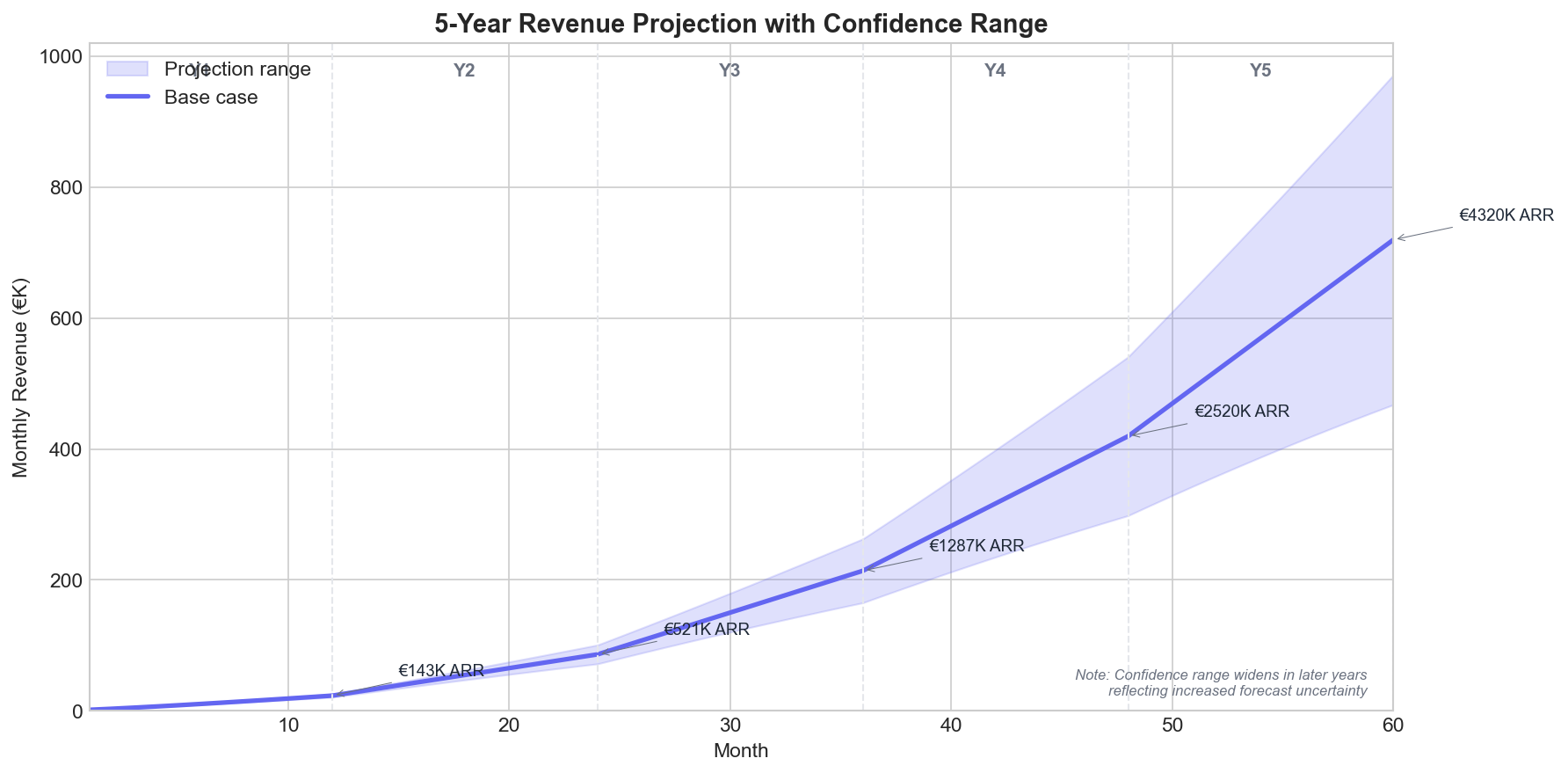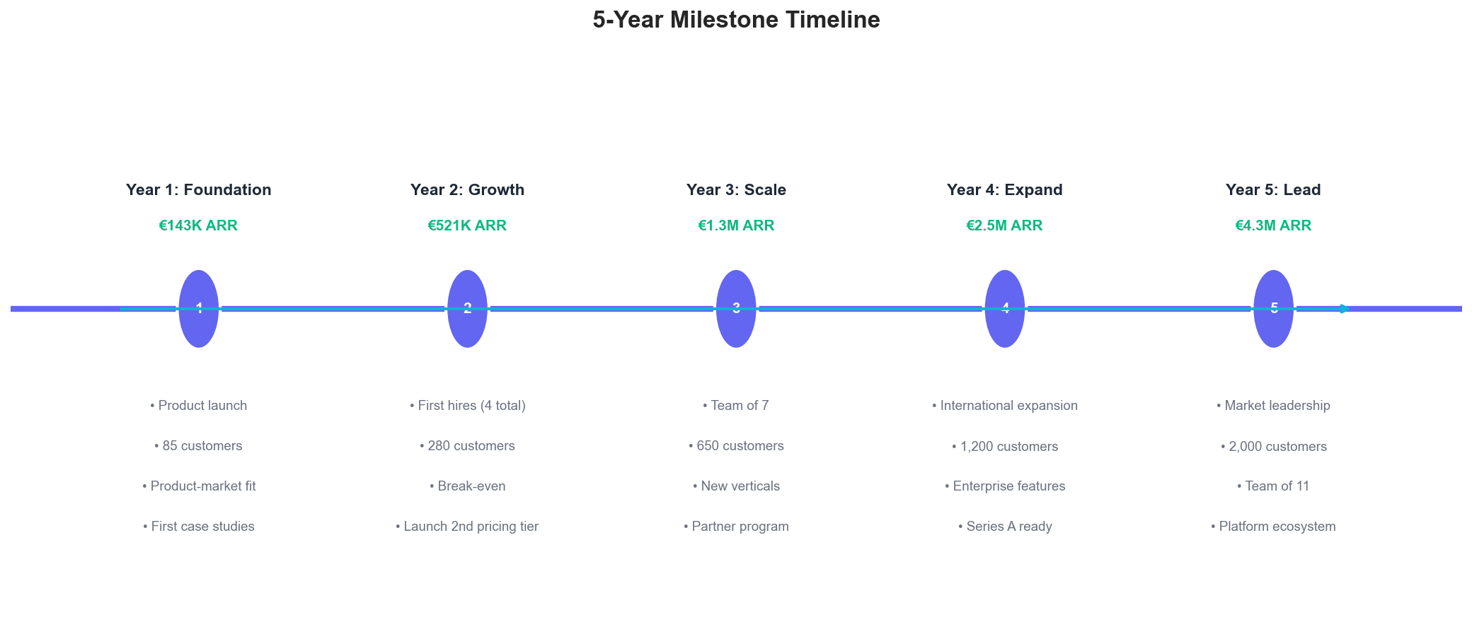 | Year 4 | €2.52M ARR | International expansion, enterprise features |