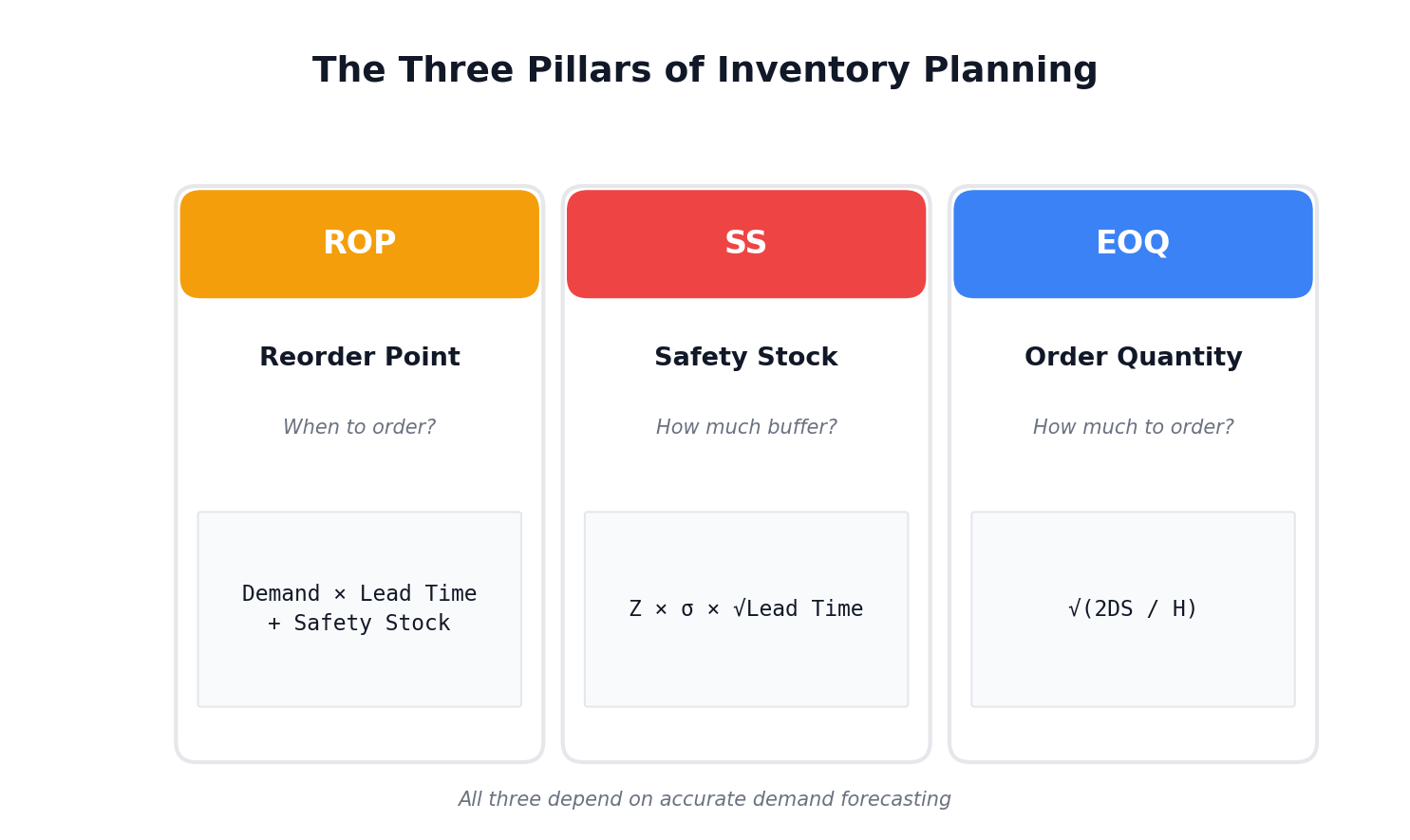 Here's what most inventory guides don't tell you: all three calculations above depend on your demand forecast.