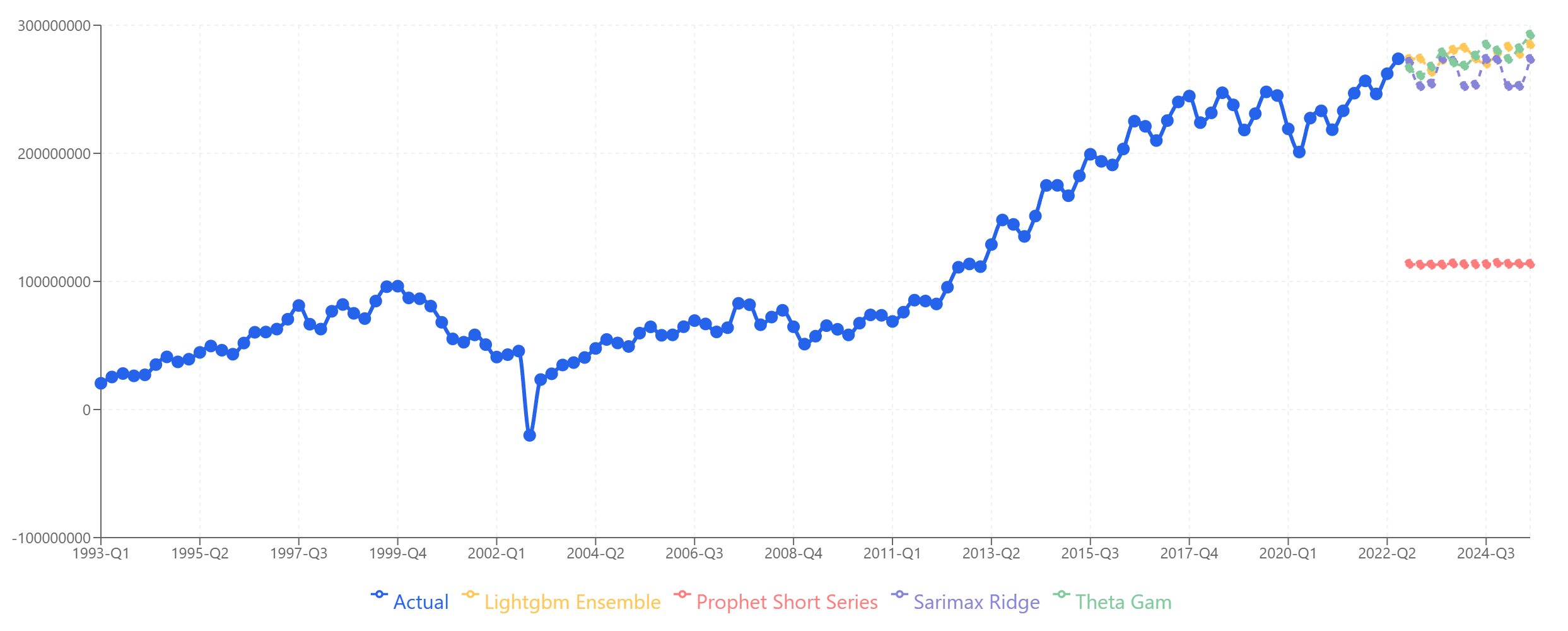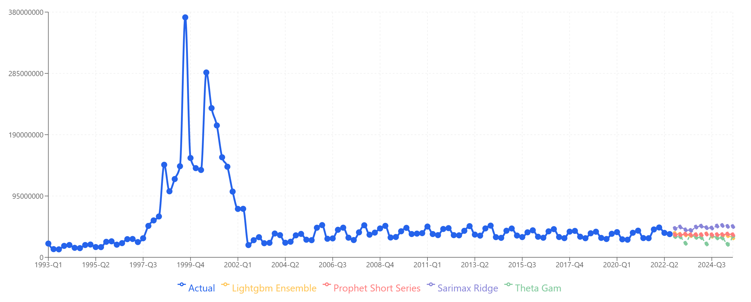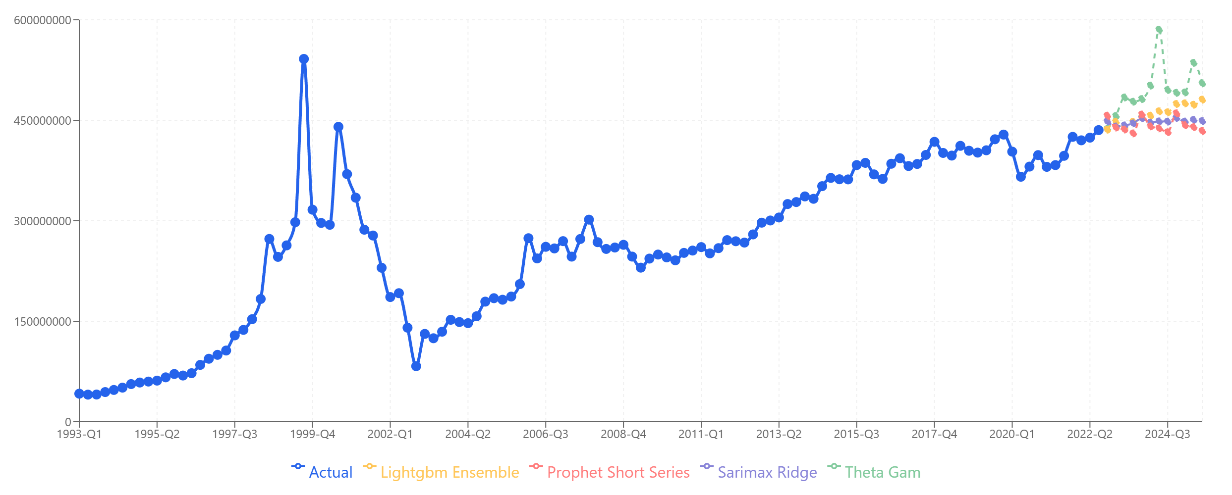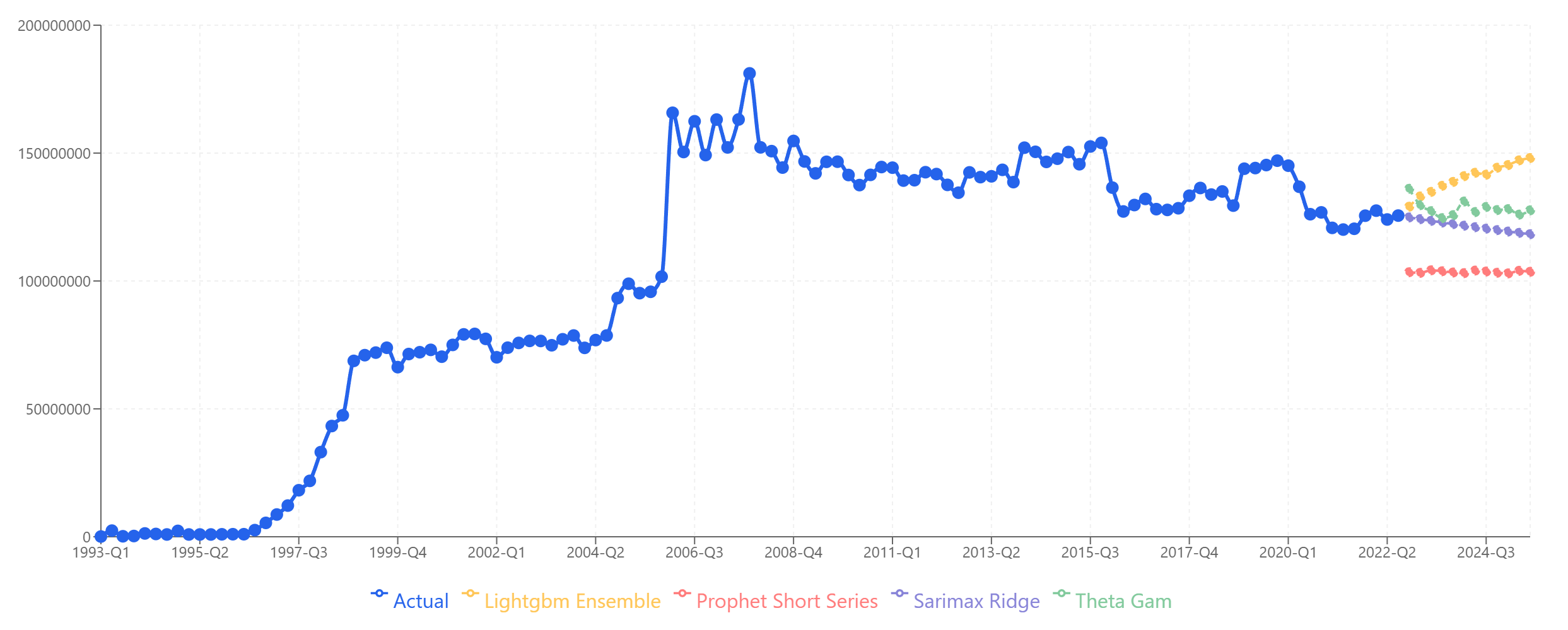 | Period | Theta-GAM | LightGBM | SARIMAX | Prophet | Collated | Actual |