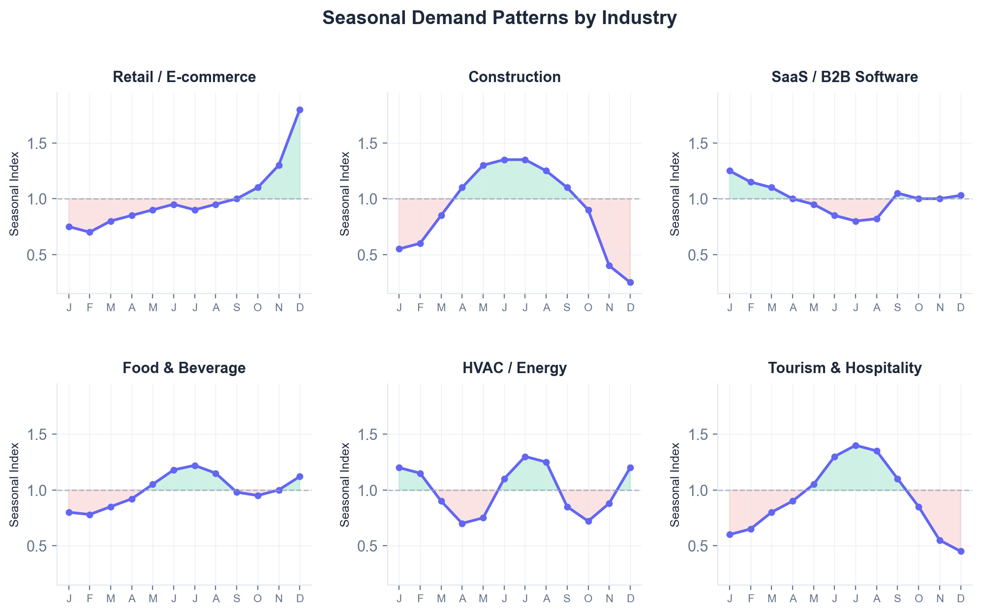 Seasonality looks different depending on your business. Understanding the typical pattern for your industry is a useful starting point — even before you analyze your own data.